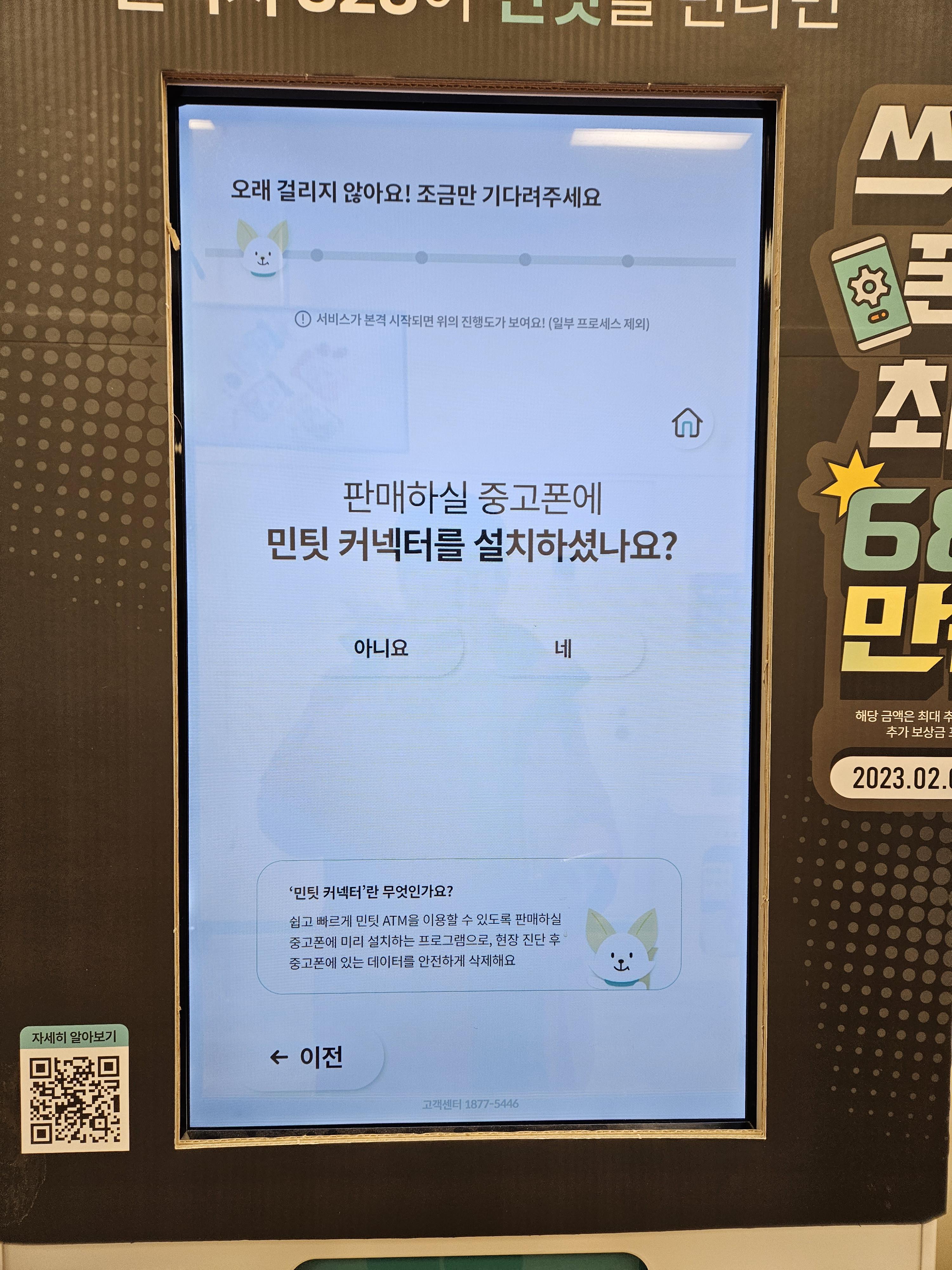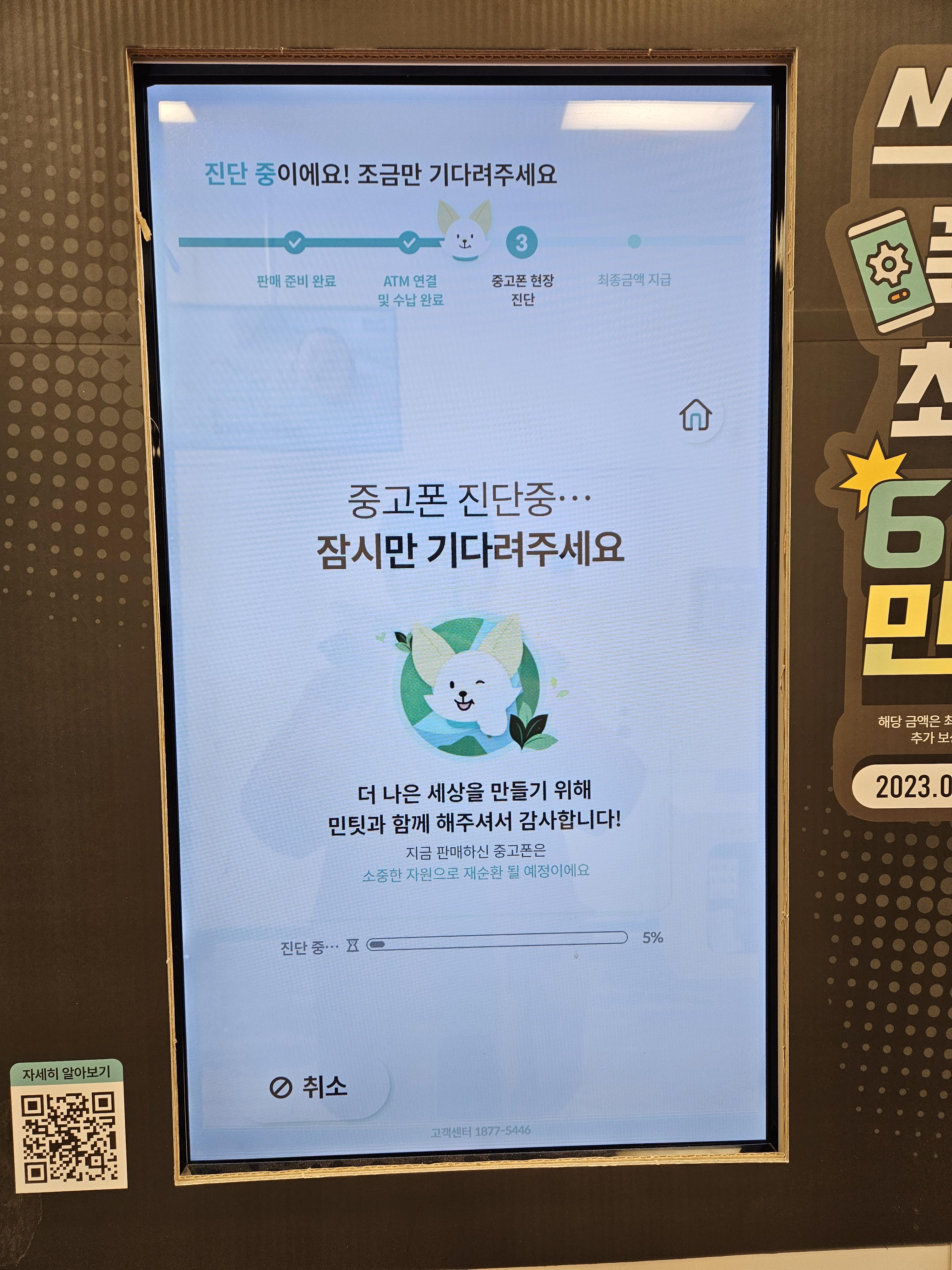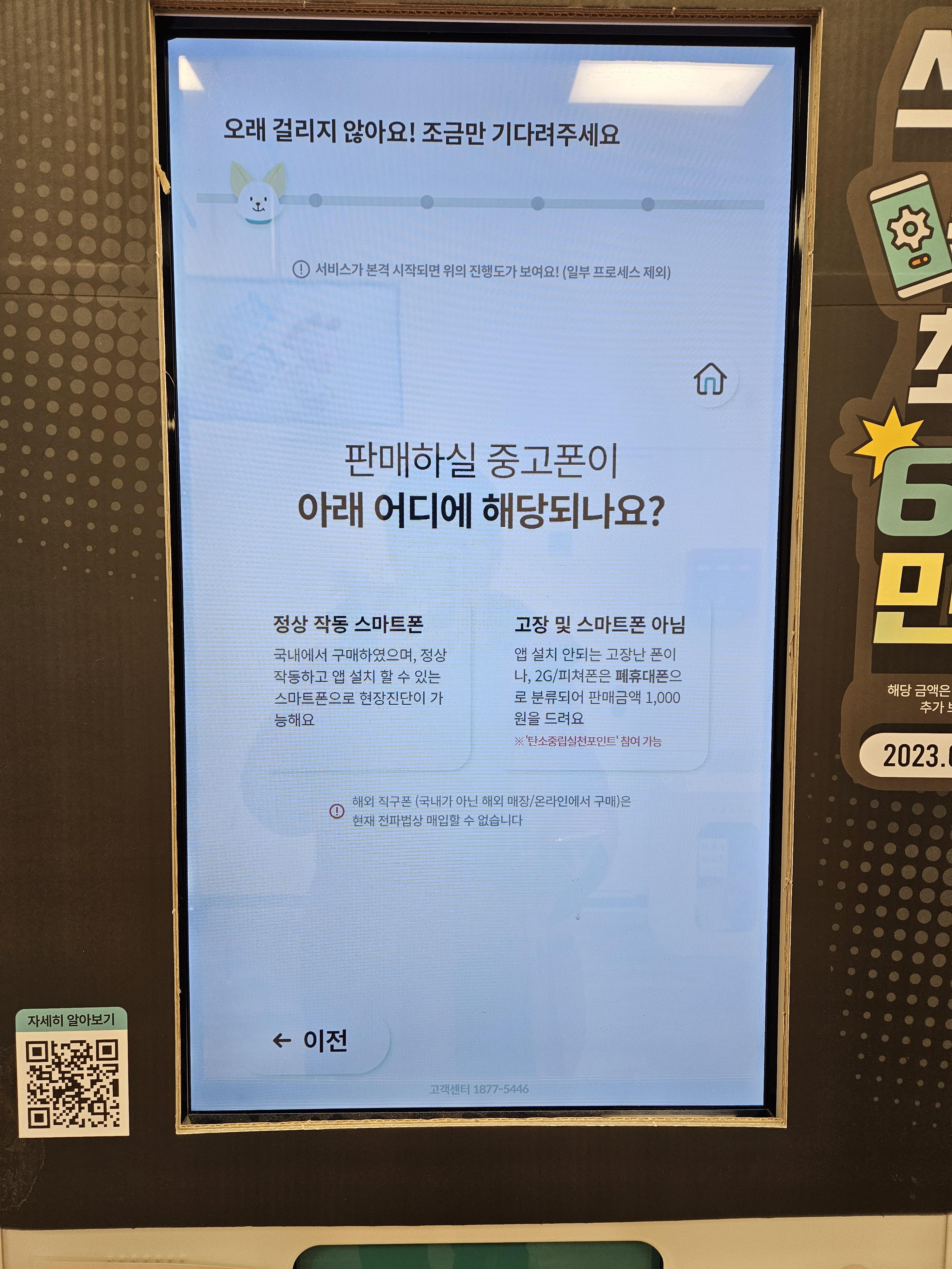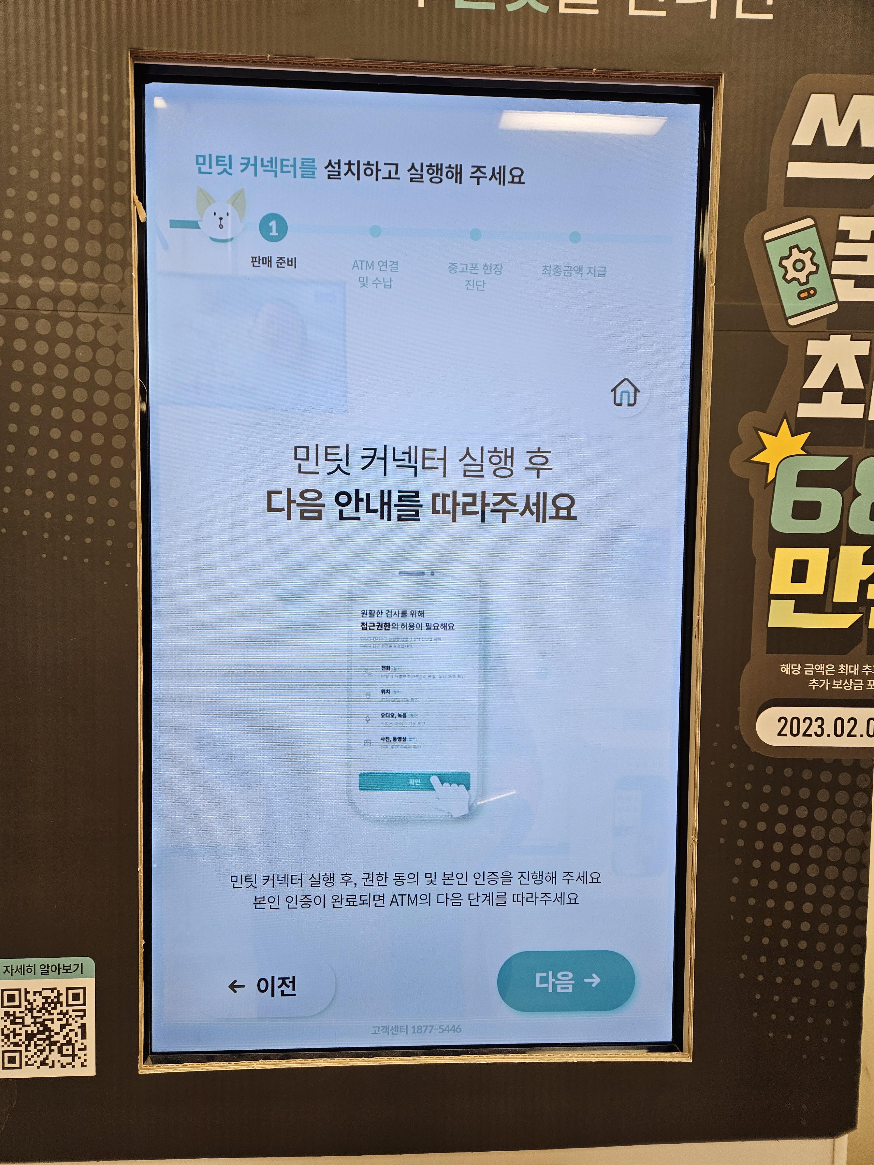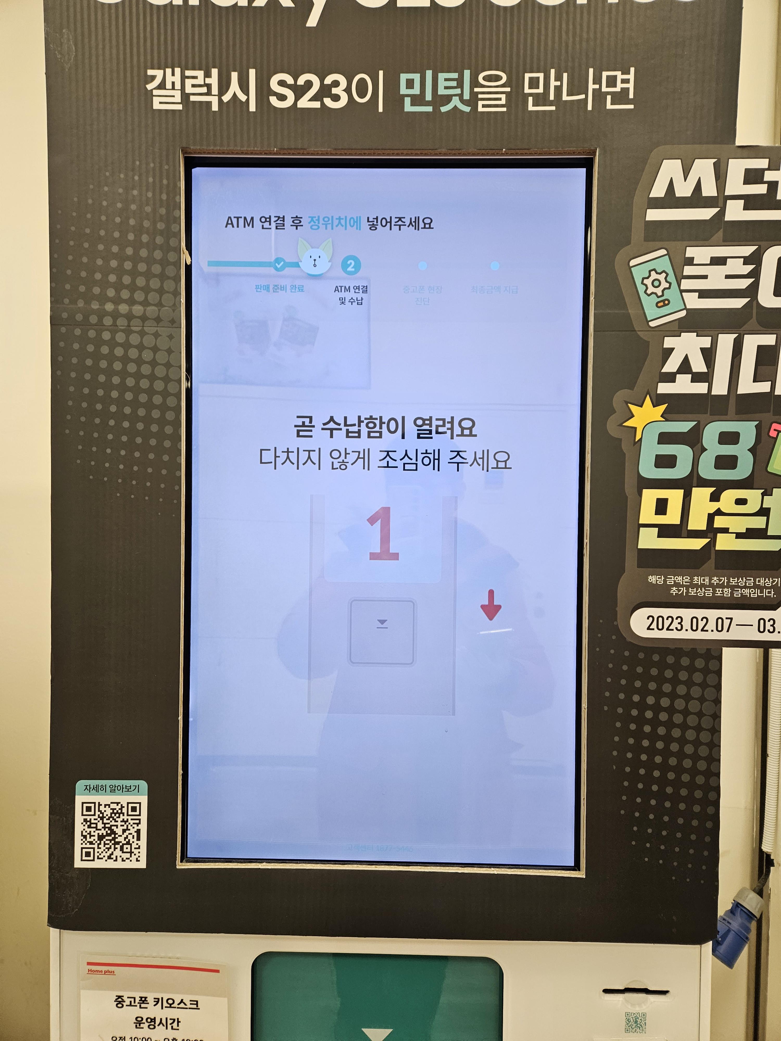 ATM ์์ ์์ ๋ฏผํ ์์ ๋ฒํผ์ ๋๋ฅธ๋ค. ๋ง์ฝ ์ค๊ณ ํฐ ํ๋งค๋๊ธ์ ๊ธฐ๋ถํ๊ณ ์ถ๋ค๋ฉด ๊ทธ ๋ค์ ํ๋ฉด์์ “๊ธฐ๋ถํ๊ธฐ” ๋ฒํผ์, ํ๋งค ํ ๋๊ธ์ ์ง์ ๋ฐ๊ณ ์ถ๋ค๋ฉด “ํ๋งคํ๊ธฐ” ๋ฒํผ์ ๋๋ฅธ๋ค. ์์ ์ ์ฃผ์์ฌํญ์ ์ ์ฝ์ ํ ๋ค์ ๋ฒํผ์ ๋๋ฅด๋ฉด ์ด๋ค ๋จ๋ง๊ธฐ๋ฅผ ํ๋งคํ๋์ง ๋ฌป๋๋ค. 2G ํผ์ณํฐ์ด๋ ์์ ํ ๊ณ ์ฅ๋ ํฐ์ด ์๋๋ผ๋ฉด “์ ์ ์๋ ์ค๋งํธํฐ”์ ํฐ์นํ์.