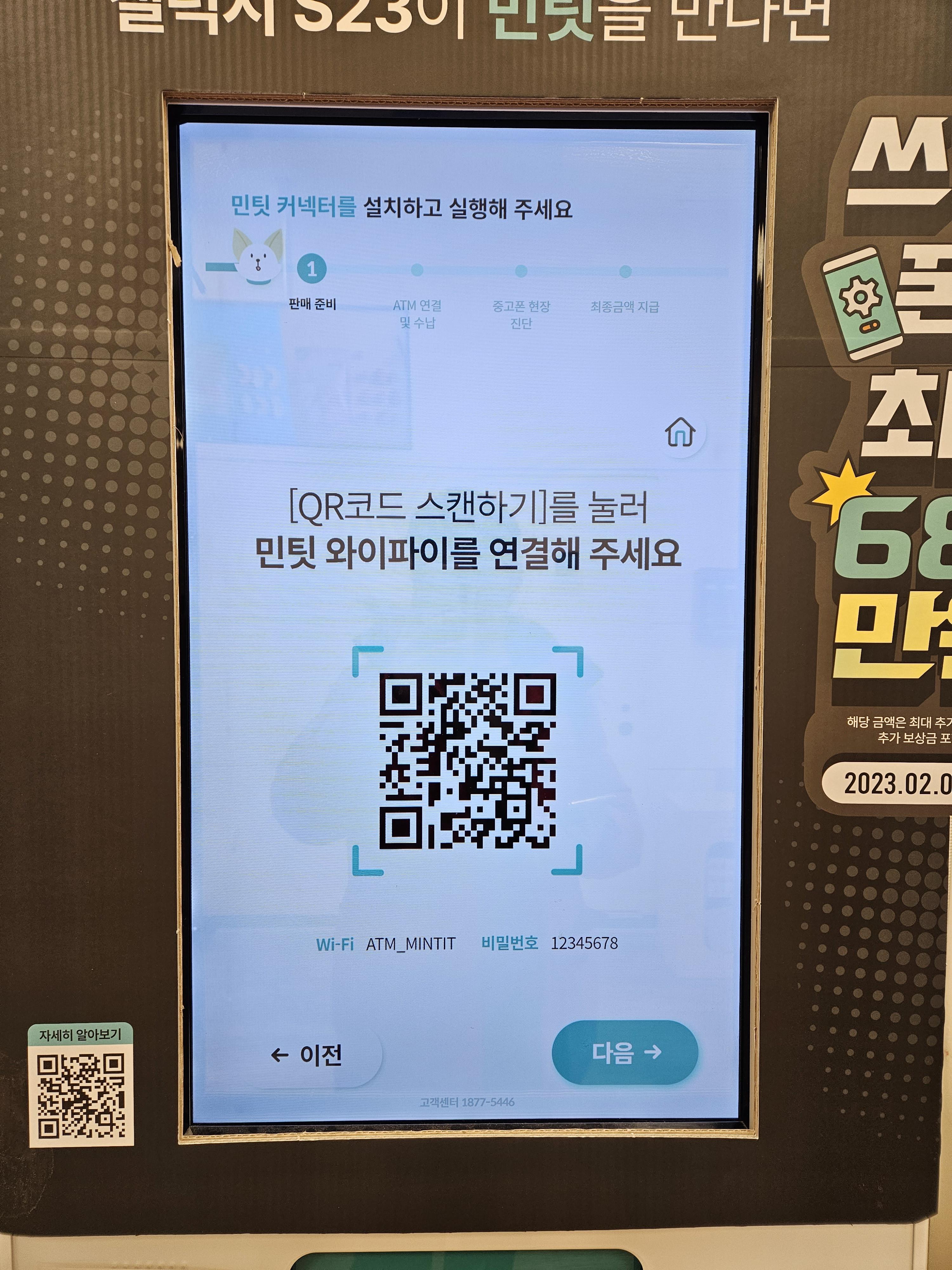 ์์์ ์ค๋ช ํ ๋ฐ์ ๊ฐ์ด ๋ฏธ๋ฆฌ ๋ฏผํ ์ปค๋ฅํฐ ์ฑ์ ๊น๊ณ ๋ ํ, ์๋ด๋ฅผ ๋ฐ๋ผ๊ฐ๋ค. ํด๋ํฐ์์ QR ์ฝ๋ ์ค์บํ๊ธฐ, ํน์ ์นด๋ฉ๋ผ ์ฑ์ ์ด๊ณ QR์ฝ๋๋ฅผ ์ค์บํ๋ฉด ATM๊ณผ์ ์ฐ๊ฒฐ ๋งํฌ๊ฐ ๋ฌ๋ค. ํฐ์์ ATM๊ณผ ์ฐ๊ฒฐํ๊ฒ ๋๋ ์๋ด๊ฐ ๋จ๋ฉด "์ฐ๊ฒฐ" ๋ฒํผ์ ๋๋ฅธ๋ค.
